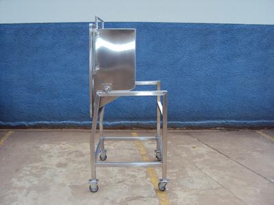 Saiba mais sobre Carrinho de tombo Carrinho de tombo construído em inox, com rodas e alças laterais para diriger e despejar o conteúdo.